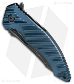 Brous Blades Tanium Design T4 Flipper Knife Blue Aluminum (4″ Acid SW)