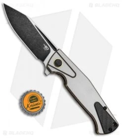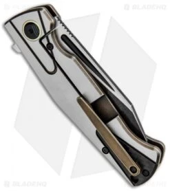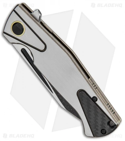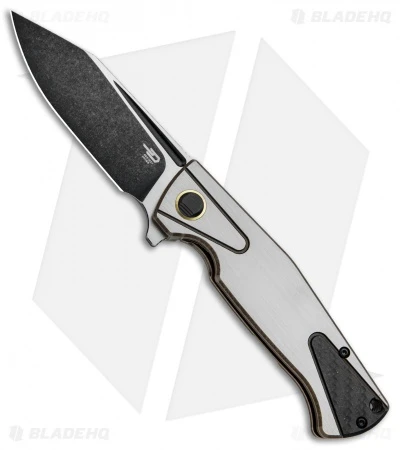 This model of the Bestech Horus sports a satin gray titanium handle with carbon fiber inlays and bronze accents and a black stonewashed blade made from S35VN.