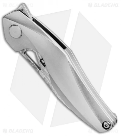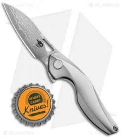 This Reticulan model is built with a gray titanium handle and a damascus blade. The blade offers impressive opening action with the aid of a flipper. A deep finger choil and a contoured handle provide secure, blade control, despite the small stature. Add a mini compact flipper to your rotation with the Bestech Reticulan.