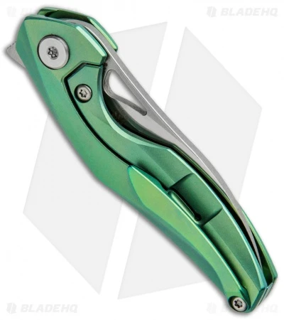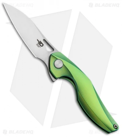 This Reticulan model is built with a green ano titanium handle and a satin finished blade. The blade offers impressive opening action with the aid of a flipper. A deep finger choil and a contoured handle provide secure, blade control, despite the small stature. Add a mini compact flipper to your rotation with the Bestech Reticulan.