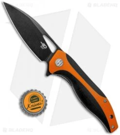 This Komodo model from Bestech Knives has a Black finished drop point blade with a black and orange two-tone, G-10 handle.
