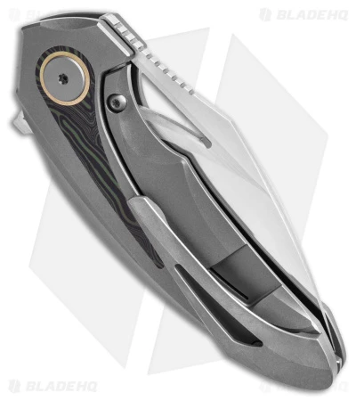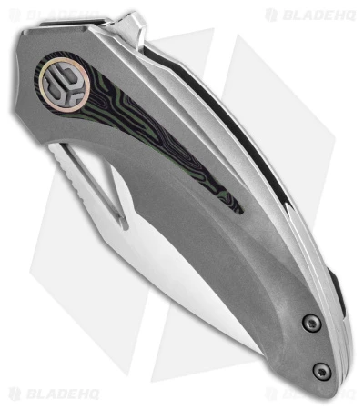 - Titanium handle with multicolor G-10 inlay.