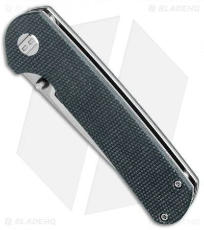 - Black micarta scales over stainless steel liners.