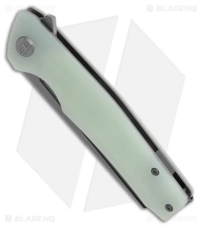 - Natural jade G-10 handle scales on steel liners.