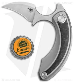 - Hawkbill blade with a stonewash finish made from Bohler M390.