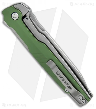 Sleek, slim, and built to last, the Brous Blades Icon offers an EDC design for all of your daily carry needs. This Icon model sports a stonewashed blade and frame, and green handle scales. Brous collaborated with knife-maker TJ Schwarz on this design that features stainless steel construction and a clean aesthetic. 3D machined aluminum scales come in a variety of colors so you can pick your favorite or collect them all. Custom hardware and a stainless steel lanyard loop/backspacer finish off the impressive EDC design.