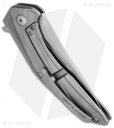 The Brous Blades Parallax is an ultralight flipper with a slim, pocket friendly build and a sweeping modified drop point blade. Its titanium frame lock handle provides secure blade lock up and outstanding ergonomics. The Parallax features a hollow ground D2 tool steel blade with plenty of belly, and a razor sharp tip suited for precision. This model has a satin finished blade and a titanium handle.