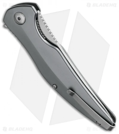 Introduced at the 2015 BLADE Show, the Sniper flipper is a relatively inexpensive USA-made everyday carry specialist with a super thin profile. One of the standout features on this knife is the stainless steel liner lock tab that wraps around the 6061 aluminum handle to form the pocket clip. While lightweight, the Sniper’s 5 inch handle makes it sturdy in hand with a full four-finger grip and thumb jimping up top.