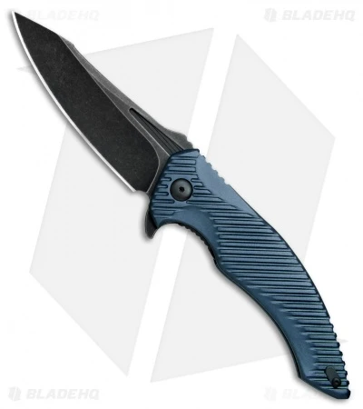 This T4 model comes equipped with a blue aluminum handle and a black acid washed blade.