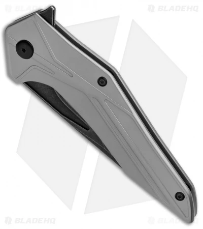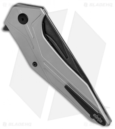 This Tyrant model has an acid stonewash finished D2 blade and a silver anodized aluminum handle.