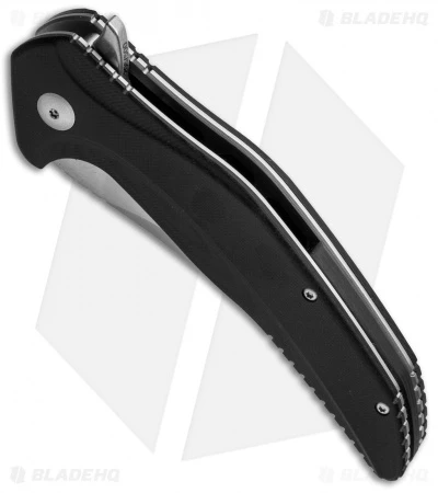 Brous Blades’ Vendetta flipper is a unique Persian-influenced folding knife that boasts a recurved tanto blade with an upswept tip. The satin finished D2 tool steel blade is hollow ground and set on the proprietary Brous Bearing System for smooth, reliable performance. Its handle matches the flow of the blade aesthetic in its milled black G-10 scales. Along with skeletonized stainless steel liners, the handle has a milled pocket and G-10 back spacer.