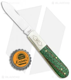 This one-bladed Barlow has a smooth green zebrawood handle.