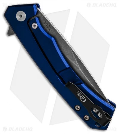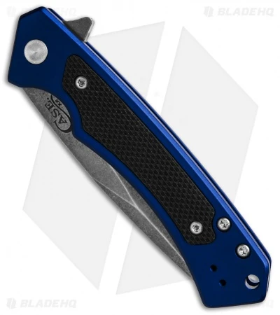 - Blue-anodized aluminum handle with a G-10 grip inlay.