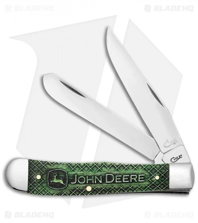 This John Deere edition Trapper model has a green bone handle and a John Deere logo embellishment.