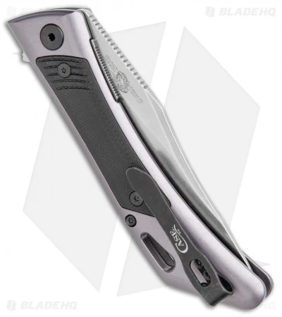 This Shark Tooth has a dark gray anodized aluminum handle and black G-10 inlays.
