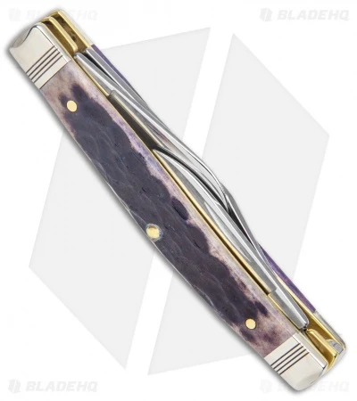 This Medium Stockman has a jigged purple bone handle.