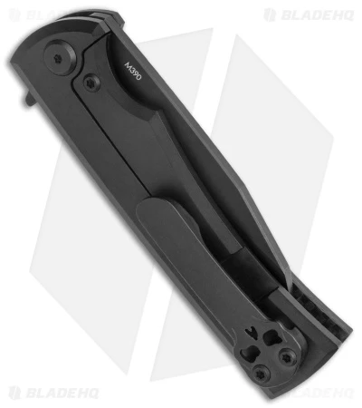 - Black-finished Wharncliffe blade made from Bohler M390 steel.