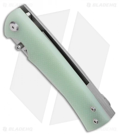 This Blade HQ Exclusive Liberation 229 has a jade G-10 handle and a satin/stonewashed blade.