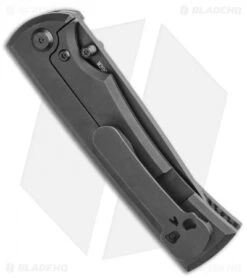 This Blade HQ Exclusive Liberation Street model has a gray titanium handle with a carbon fiber inlay. Its blade is made from Bohler M390 steel with a lightly tumbled black finish.