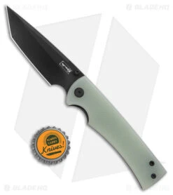 This Blade HQ exclusive Chaves Liberation 229 knife features a black PVD-finished blade and titanium frame with a natural jade G-10 show scale.