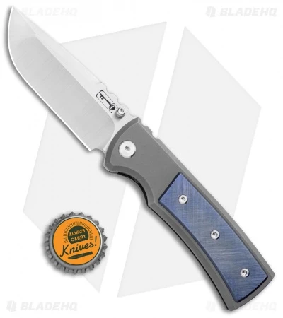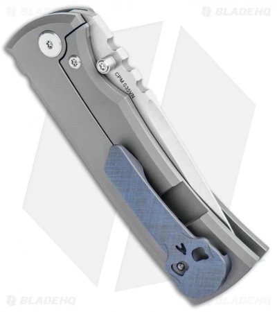 This Blade HQ Exclusive Redencion Street model has a bead blasted finished titanium handle with a cross hatch pattern purple titanium inlay and matching pocket clip. The drop point blade is made from S35VN steel with a machine satin finish.