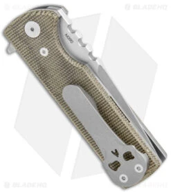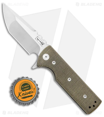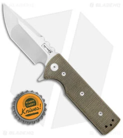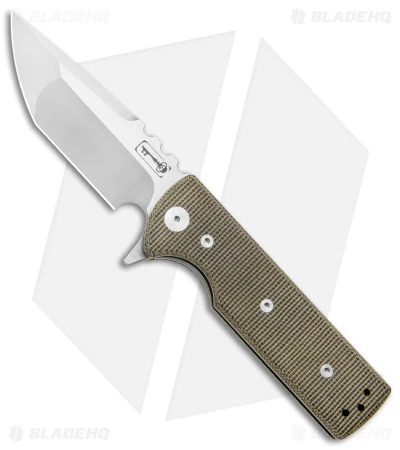 - Green micarta handle scales with beveled edges.