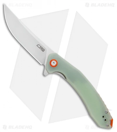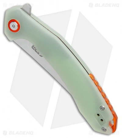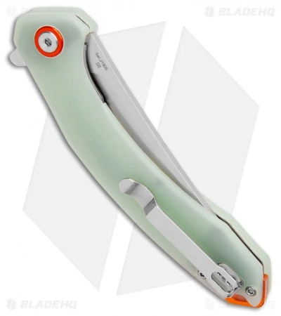 - Natural jade G-10 handle scales with an orange backspacer.