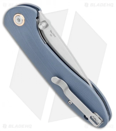- Blue-gray G-10 handle scales over stainless steel liners.