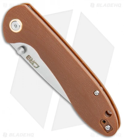 This Feldspar has a 3.5″ blade and a brown G-10 handle.