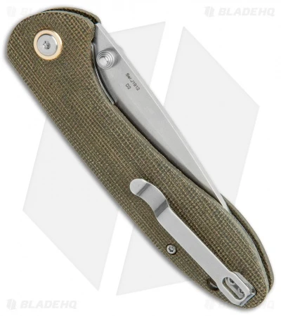 - Green micarta handle scales.