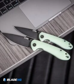 This Blade HQ Exclusive Feldspar model sports ghostly, natural G-10 handles with nested liners and black accents. The upgraded 3.5″, CPM-S35VN steel blade is black coated.