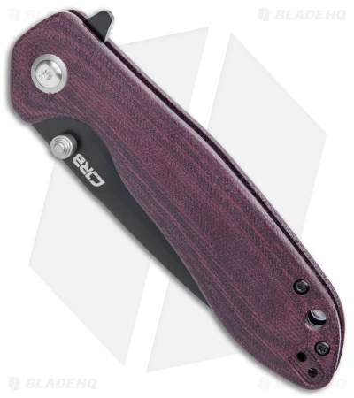 - Burgundy micarta handle scales.