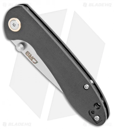 - Black G-10 handle scales over stainless steel liners.
