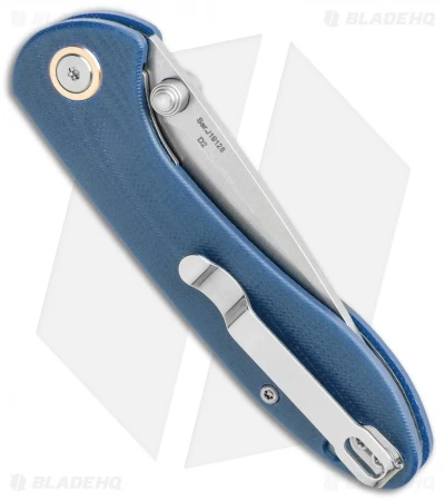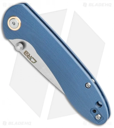 - Blue-gray G-10 handle scales over stainless steel liners.