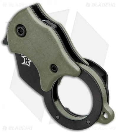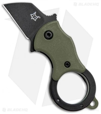 This model of the FOX Knives Mini-TA has an OD green FRN handle and a black wharncliffe blade.