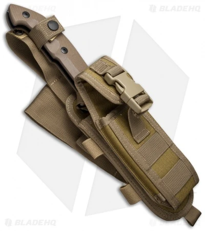 The Meskwaki Tracker is a folding version of Fox Knives’ Tracker Utility Camp and Sniper. It sports an unconventional modified blade that features a compound grind and strong tanto tip, which offers advantages in cutting and piercing tasks. The Tracker “Meskwaki” has a stout lock back mechanism and an additional safety lock to secure the blade in the open or closed position. Textured dark earth brown G-10 scales sit atop the black coated stainless steel liners and provide sure grip in hand. The Meskwaki Tracker includes a MOLLE compatible nylon sheath for both open or closed knife carry.