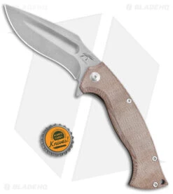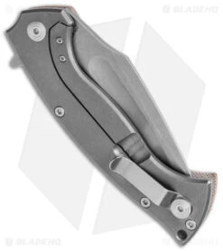 - Natural micarta and stonewashed titanium scales.