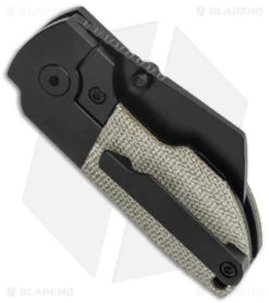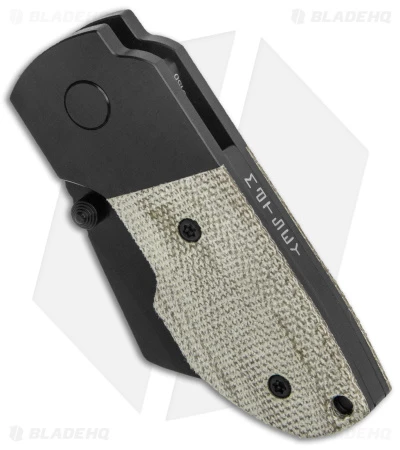 - Black DLC titanium handle with green micarta inlays.